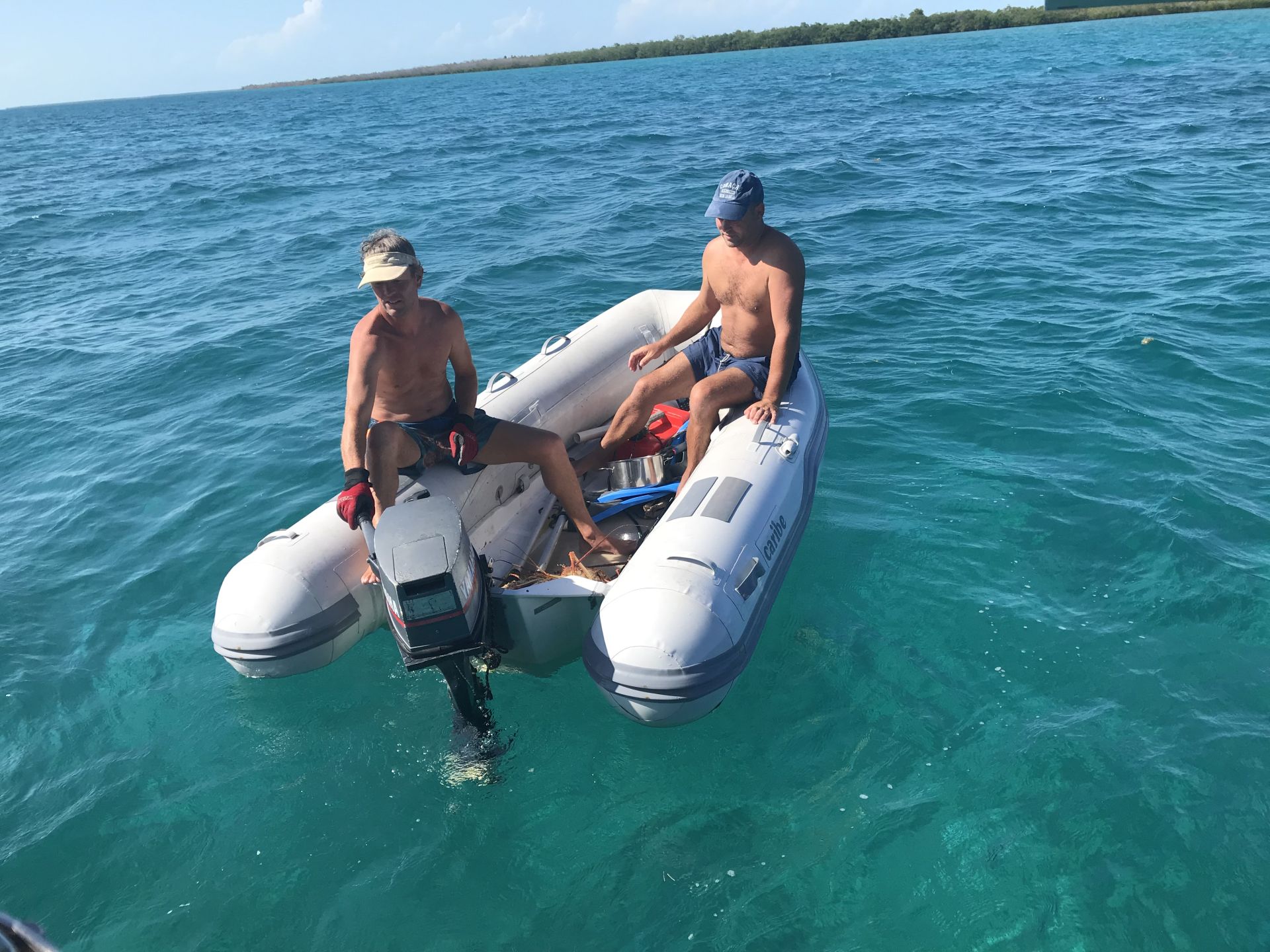 Voordat we Cayo Campos verlaten komt ’s morgens Noël nog even langs. Hij heeft 4 gekookte lobsters in zijn bootje liggen en geeft ze aan ons met de vraag of we misschien nog een flesje rum over hebben…