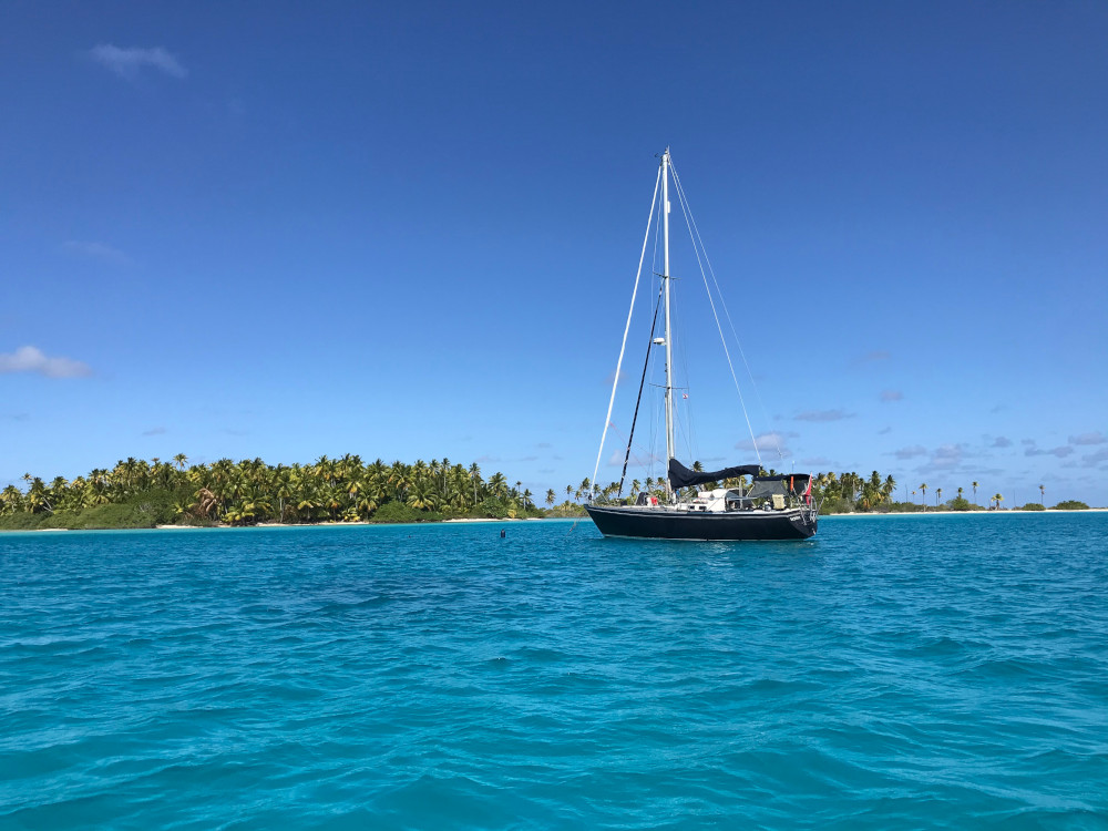 We liggen helemaal alleen in een ring van koraal in het midden van de stille oceaan voor anker. Vanaf de boot zien we de deining van de oceaan en de golven die breken op het buitenrif. Binnen het rif …