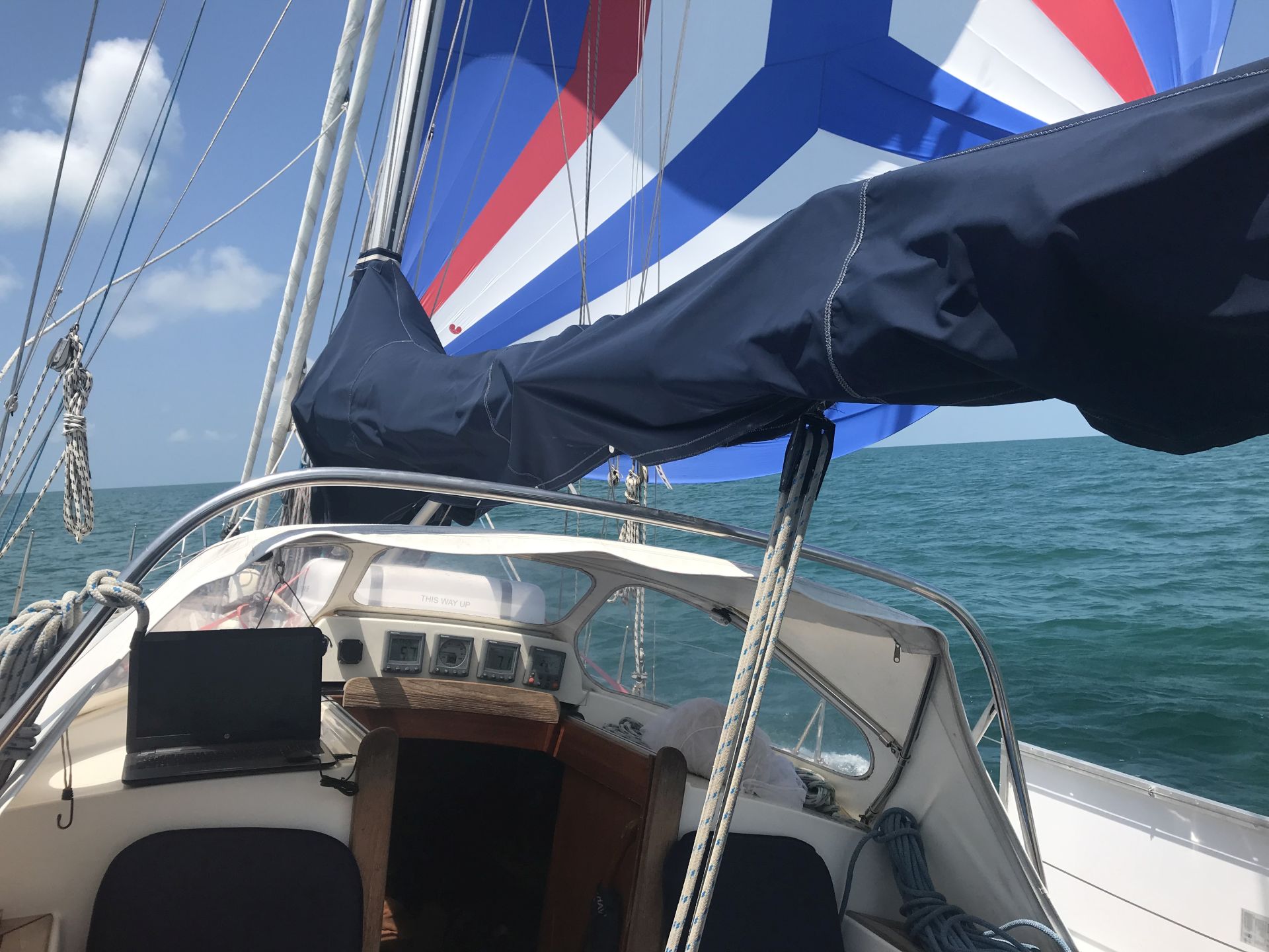 Er is nauwelijks wind maar onze halfwinder trekt ons met zo’n 3 knopen de juiste richting op. Na een paar uur trekt de wind aan en vliegen we lekker door het water. Binnen het rif zijn er bijna geen g…