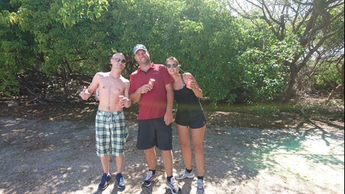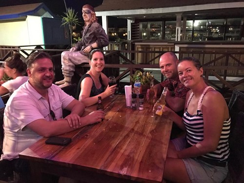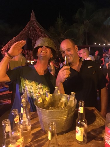 Na het snorkelen bij de Tugboat hebben de heren wel een pilsje verdiend