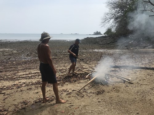 Sommigen zullen misschien raar opkijken van het feit dat we vuilnis verbranden maar geloof me, dit is echt de beste oplossing hier. Als je het meegeeft aan de locals is de kans groot dat het gewoon ergens in zee of op het strand gedumpt wordt. In het gunstigste geval wordt het op een stookplaats verzameld en in brand gestoken. Vandaar dat we maar voor onze eigen afvalvoorziening zorgen en tegelijkertijd het strand een beetje opruimen. Er ligt hier namelijk verschrikkelijk veel plastic op sommige eilanden wat eigenlijk maar een triest gezicht is.