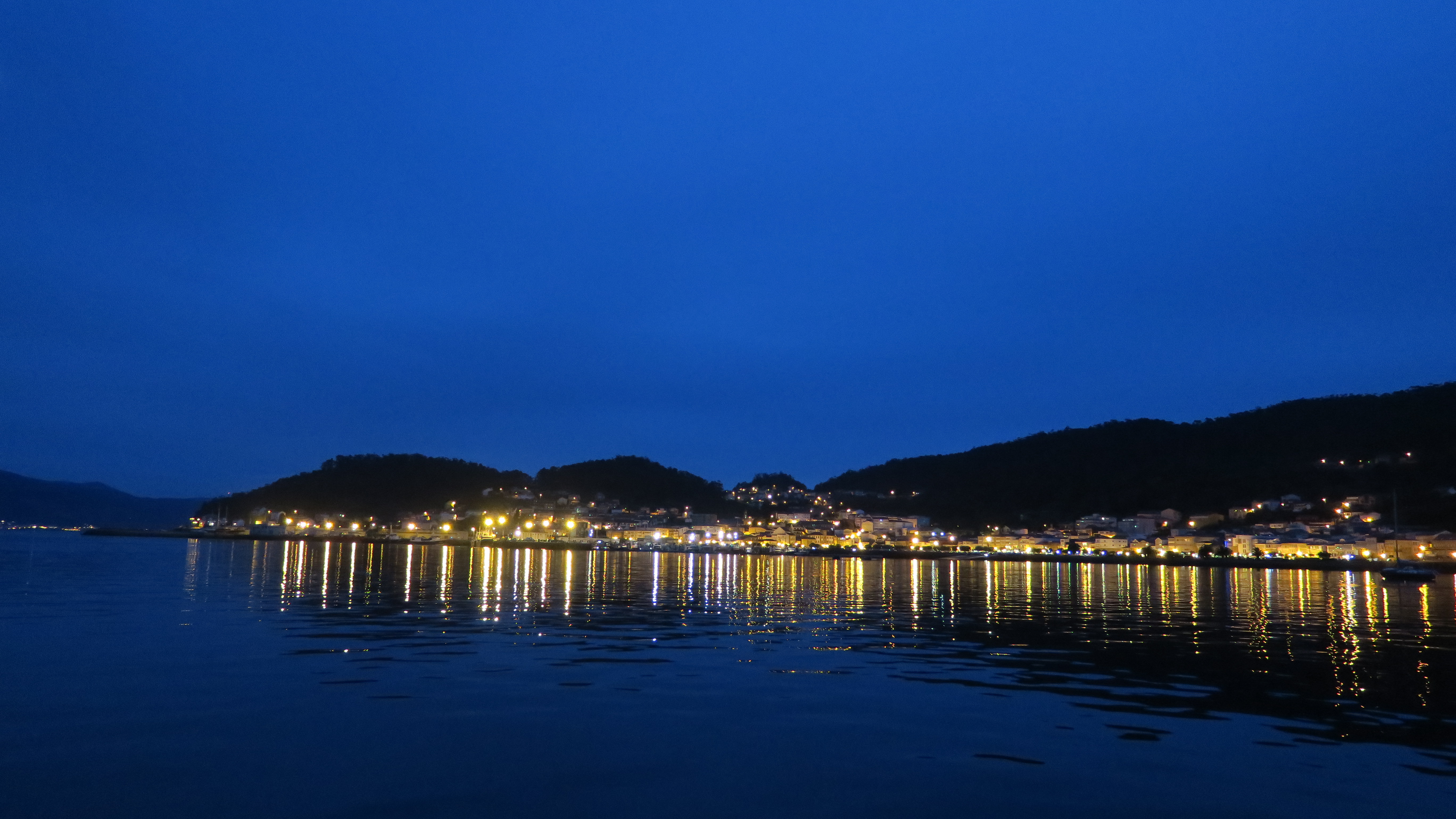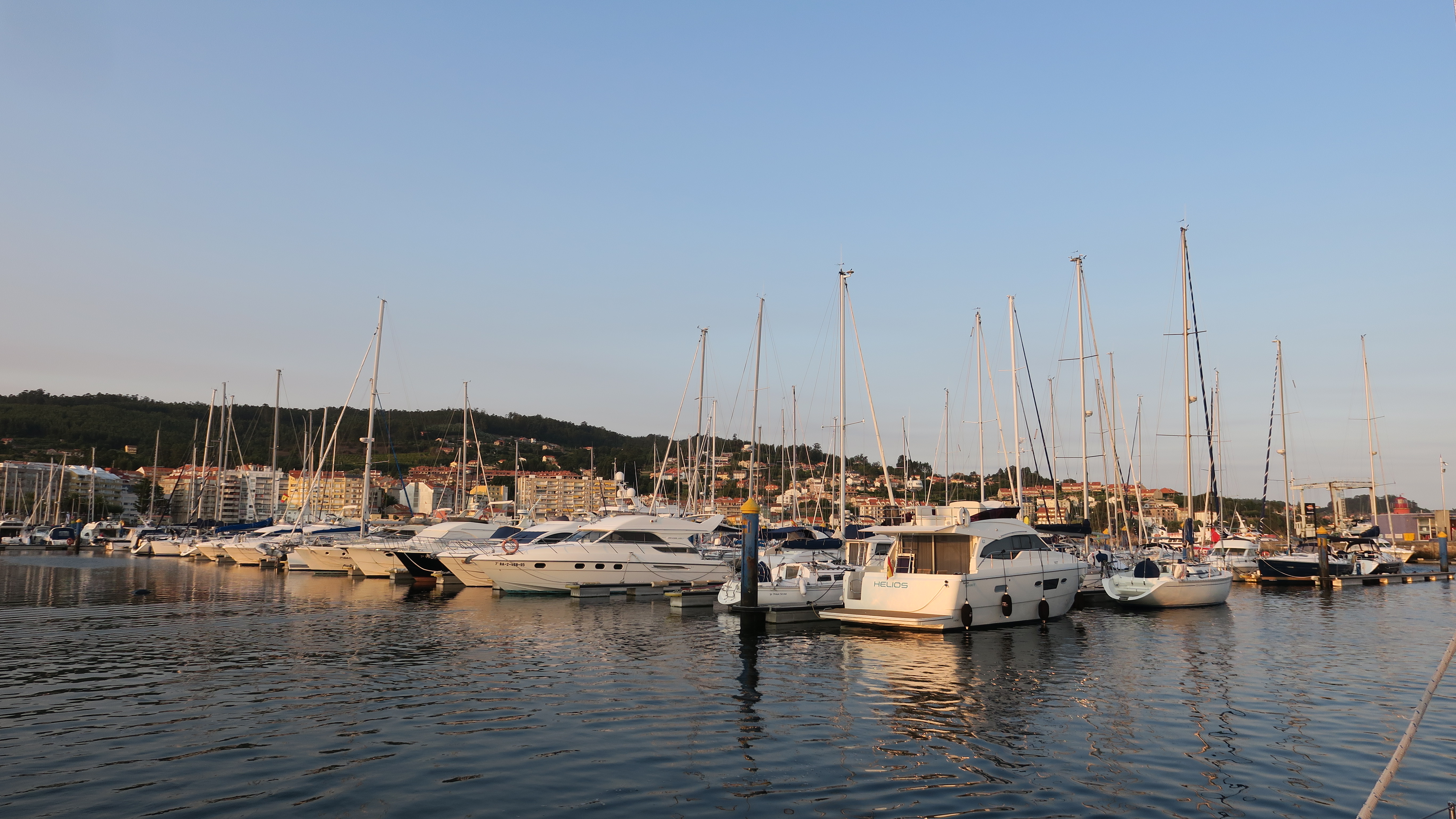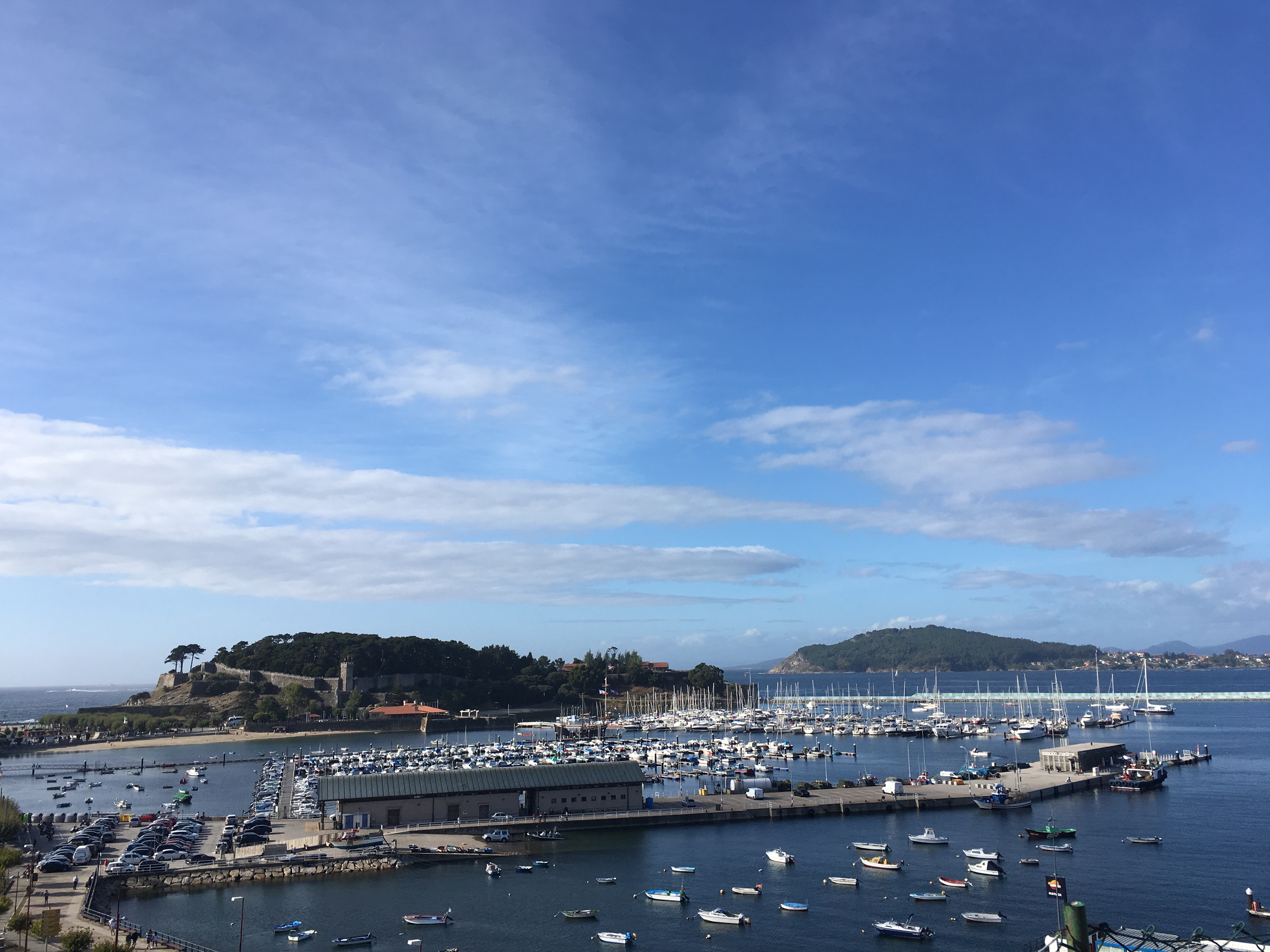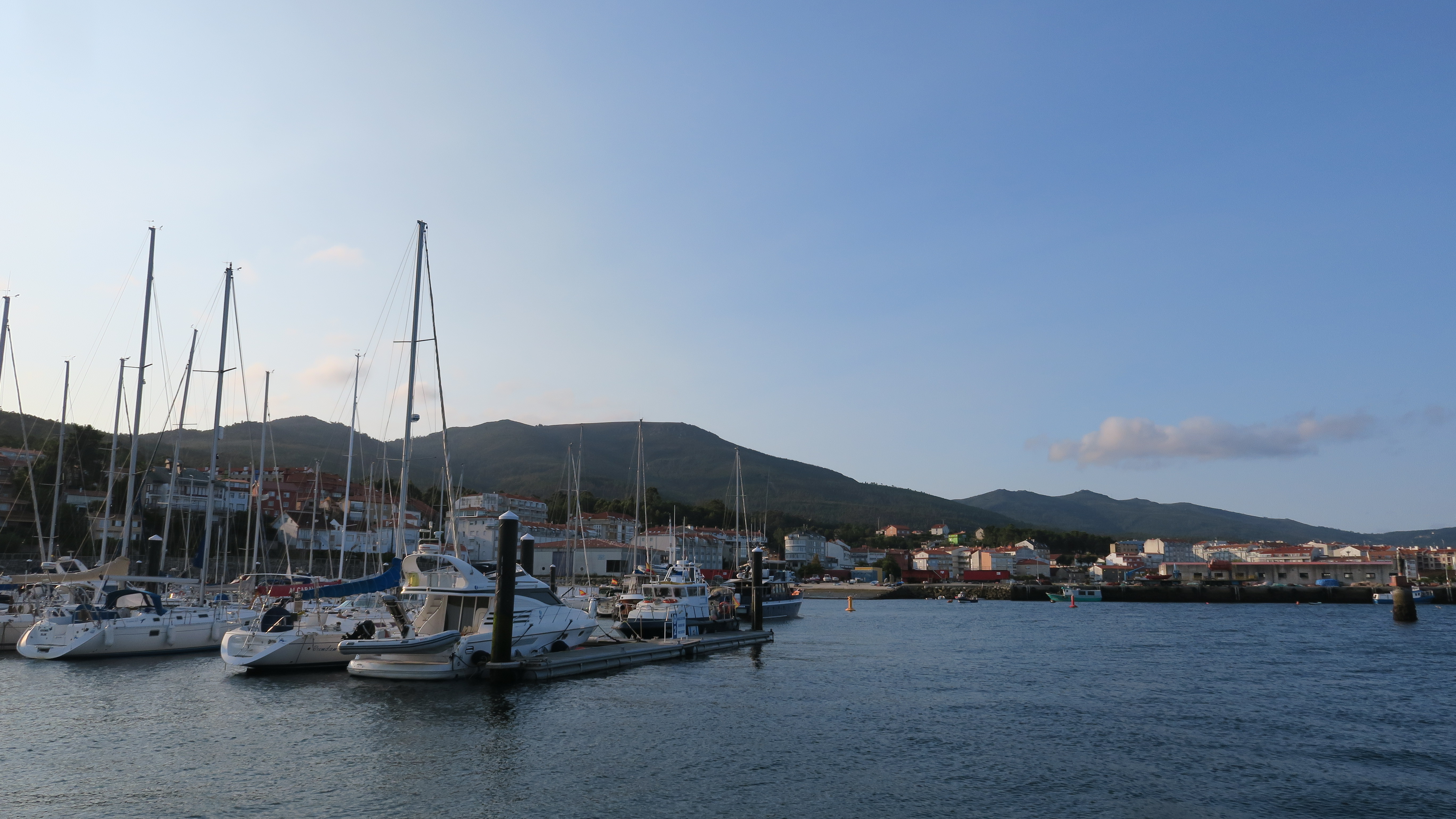 Het plan was om hier voor anker te gaan maar dat blijkt in de praktijk niet zo handig op dit moment. We wijken daarom uit naar de haven van Sanxenxo en komen terecht in een haven vol gigantische motor…
